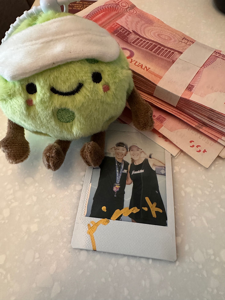 By the end of the week, I came down with a tough head cold. After a loss in mixed doubles, I made the hard but smart choice to withdraw from singles and rest up for the women’s doubles final. That decision paid off—Pei and I won gold, and the crowd’s energy was unreal. I’ve never taken so many selfies in my life—pickleball fans in China are next-level, and my cheeks actually hurt from smiling. I came home with a bag full of panda souvenirs and one very fancy gold medal—maybe one of the fanciest I’ve ever won.